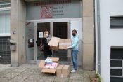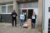Christian Violka vom Vorstand der Pestalozzi-Stiftung Hamburg nahm die Sachspende vor der Geschäftsstelle in St. Georg entgegen und wir tauschten mit Bianca Böhrensen und Malte Bökemeier (und mit gehörigem Abstand untereinander) einige interessante gegenseitige Einblicke in die jeweilige Arbeit aus.